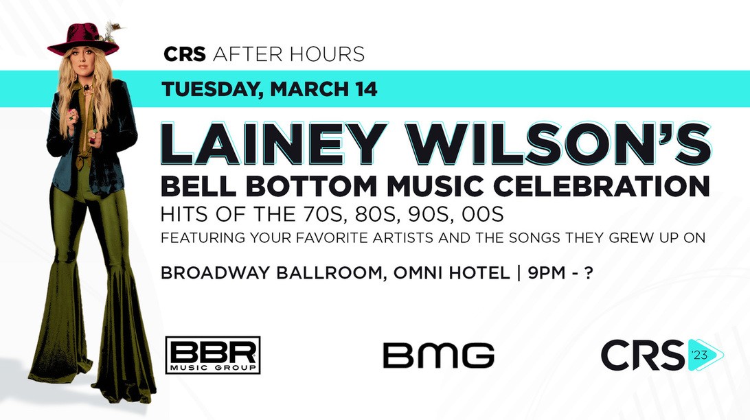 BROKEN BOW RECORDS' LAINEY WILSON will host a late-night takeover, LAINEY WILSON’S BELL BOTTOM MUSIC CELEBRATION, on TUESDAY night (3/14), during COUNTRY RADIO SEMINAR (CRS 2023). Attendees are invited to dress the part while throwing it back to the '70s, '80s, '90s, and '00s. WILSON, BBR MUSIC GROUP/BMG, and CRS are celebrating the reigning COUNTRY MUSIC ASSOCIATION Female Vocalist of the Year and New Artist of the Year, and the reigning ACADEMY OF COUNTRY MUSIC New Female Artist of the Year with the CRS-official blowout being held in the BROADWAY performance hall at OMNI NASHVILLE HOTEL.