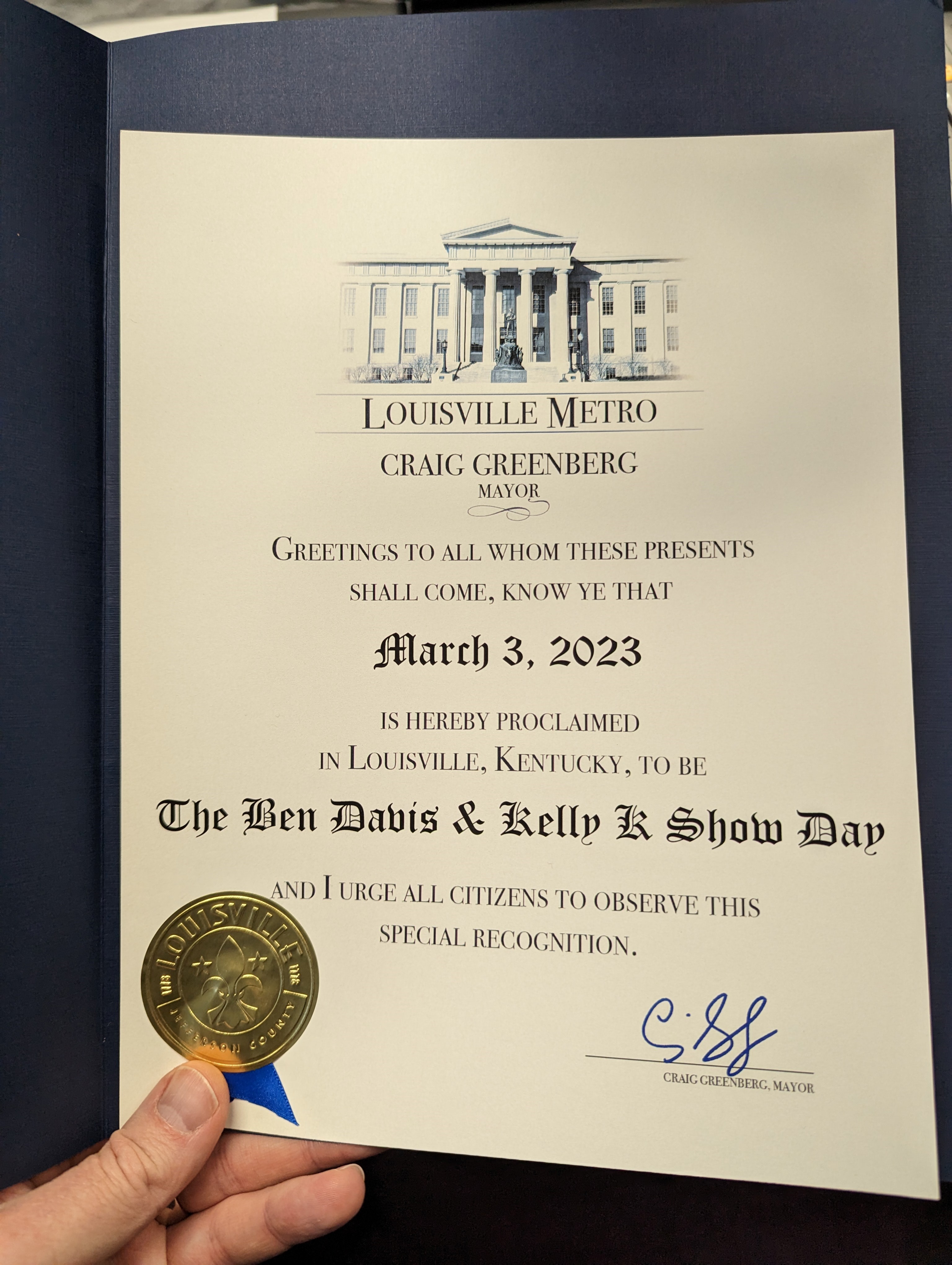 ALPHA MEDIA Top 40 WDJX (99.7 DJX)/LOUISVILLE's THE BEN DAVIS & KELLY K SHOW celebrated 15 years on the air together on FRIDAY (3/3). To coincide with the anniversary, MAYOR CRAIG GREENBERG proclaimed it "BEN DAVIS & KELLY K SHOW DAY!"