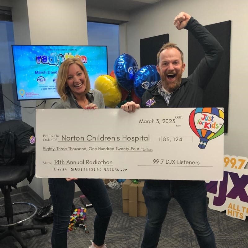 In addition, the station and show are also celebrating raising $83,124 for NORTON CHILDREN'S HOSPITAL. Their 14th Annual Radiothon took place over the course of 2 days and 24 hours. This money helps KENTUCKY's only free-standing, full-service pediatric care facility dedicated exclusively to caring for children, and is an advocate for the health and well being of all children - regardless of families’ ability to pay.