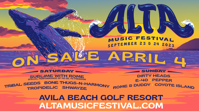 DIRTY HEADS and SUBLIME WITH ROME are among performers for the 2023 ALTA MUSIC FESTIVAL happening SEPTEMBER 23rd-24th, at the AVILA BEACH RESORT in SAN LUIS OBISPO COUNTY, CA. Tickets go on sale TUESDAY APRIL 4th.
