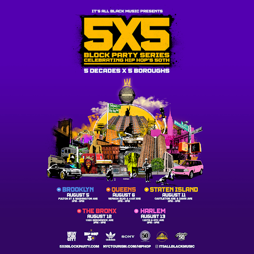 DJ ENUFF, PRINCE PAUL, ENVY, KID CAPRI, GRAND MASTER CAS are among the DJs, while KRS-ONE, CHUCK D, KOOL G RAP, ONXY, JUNGLE BROTHERS, TEMS, DED PREZ, FU-SCHNICKENS, MOBB DEEP, TALIB KWELI, ROXANNE SHANTE and more are set to perform at the 5x5 BLOCK PARTY SERIES thrown in partnership with NEW YORK CITY Mayor ERIC ADAMS.