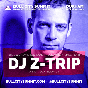 Music culture icon, curator and hip-hop mashup pioneer DJ Z-TRIP will be the featured performer at this year's BULL CITY SUMMIT, returning SEPTEMBER 18th-24th throughout downtown DURHAM, NC. The BCS 2023 celebration event for the 50th Anniversary Of Hip-Hop, is set to take place WEDNESDAY, SEPTEMBER 20th at MOTORCO MUSIC HALL. DJ Z-Trip will also join additional music industry leaders and artists on SEPTEMBER 19th at the DURHAM ARMORY to participate in an artist keynote fireside chat discussing his decades-long impact of Hip-Hop and music culture.
